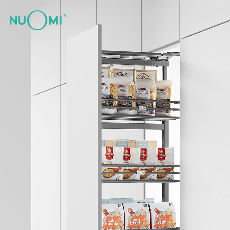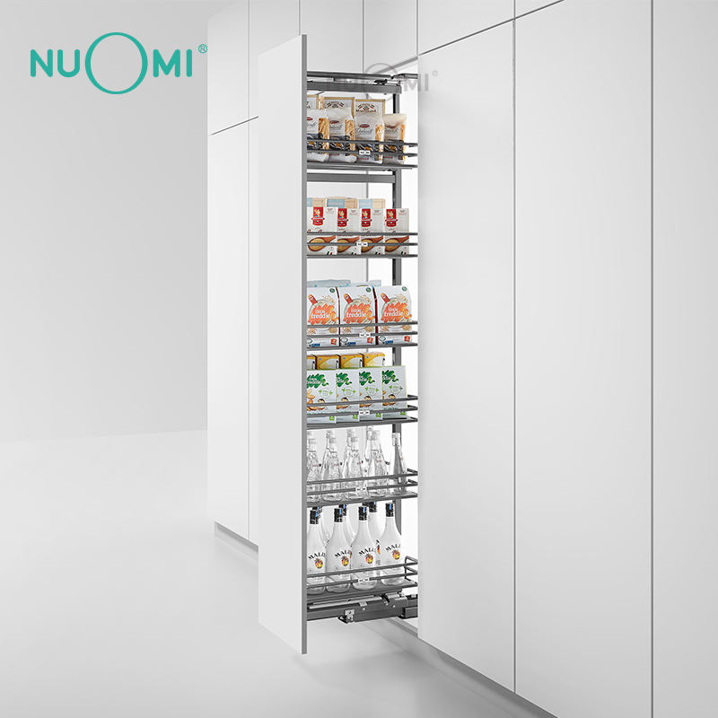 Pantry Revolving Basket in Tall Kitchen Cabinet